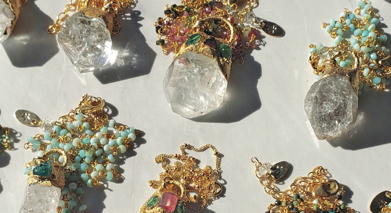 My abundant and colorful collections are handcrafted in my San Francisco studio. I design my pieces slowly, and intentionally, with attention to balance, stone energies and a profound dream for creating beauty for others. It is my sincere pleasure in alchemizing these pieces for you.